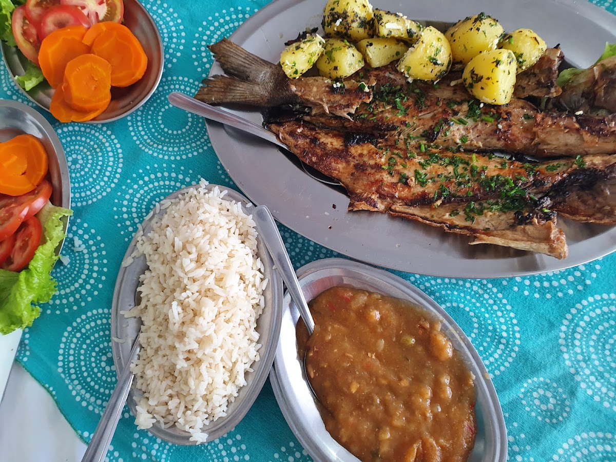 The menu at Restaurante E Pousada Beira Mar features some of the best seafood dishes in the region, with Sequência de Camarão (shrimp sequence) being the restaurant's standout dish. This delightful combination of perfectly cooked shrimp, served with a variety of complementary sides, is a must-try for any seafood lover. If you prefer something a little more hearty, the Anchova Grelhada (grilled anchovy) offers a tender and flavorful taste of the ocean, grilled to perfection and seasoned with just the right amount of spices.