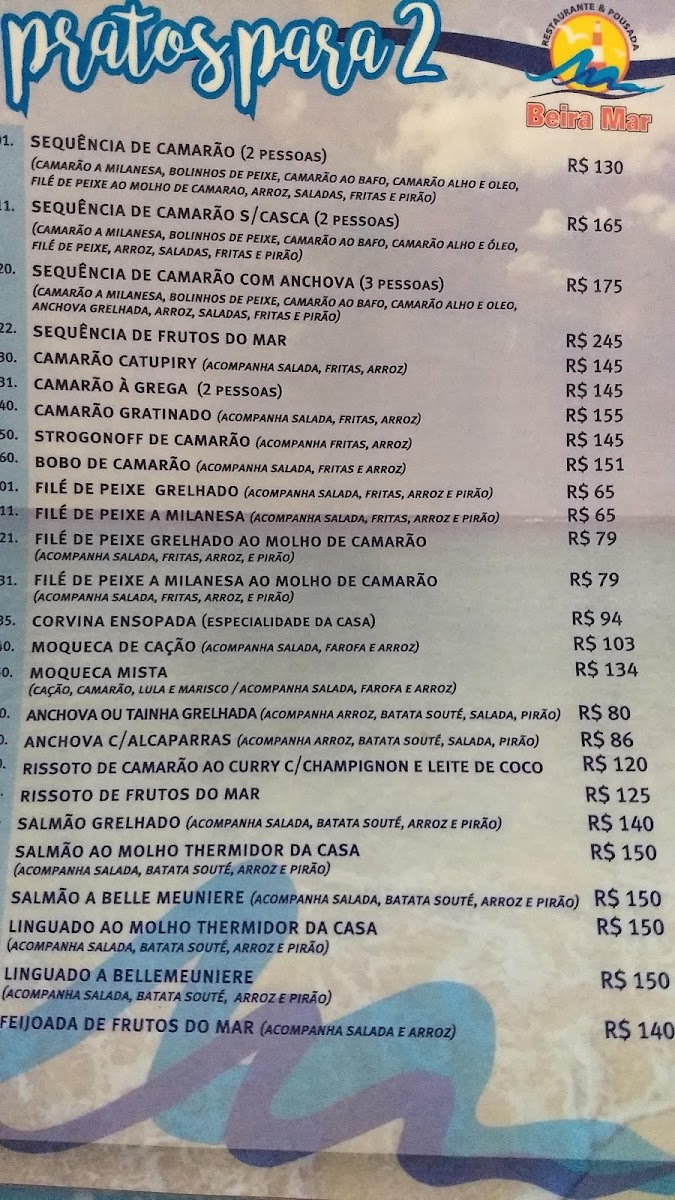The menu at Restaurante E Pousada Beira Mar delivers a satisfying showcase of fresh, coastal flavors that reflect its seaside setting, with a strong emphasis on seafood prepared in a straightforward yet flavorful style. Standout dishes like the Sequência de Camarão offer a generous and varied shrimp experience, highlighting different cooking methods and seasonings that keep each bite interesting, while the Anchova Grelhada impresses with its simplicity, allowing the natural richness of the fish to shine through with a perfectly balanced grill. Portions are notably hearty, making the offerings ideal for sharing, and the overall menu strikes a pleasant balance between traditional Brazilian beach cuisine and comforting, well-executed classics. Prices feel fair given the quality and quantity, and the consistency across dishes suggests a kitchen that understands its strengths and executes them confidently, leaving a lasting, satisfying impression.